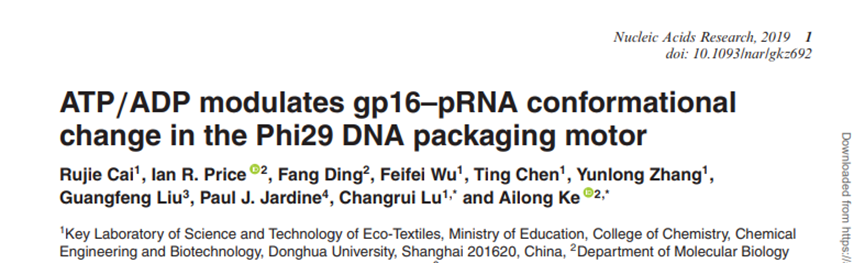 近日,我校化学化工与生物工程学院陆昌瑞教授课题组在核酸领域顶级期刊《核酸研究》(Nucleic Acidsb Research,IF=11.2)发表题为“ATP/ADP modulates gp16–pRNA conformational change in the Phi29 DNA packaging motor”的最新研究成果。该项研究首次获得病毒基因组包装马达末端的结构信息,捕获到其结合ATP/ADP所发生的构象变化,为临床治疗和药物设计提供可靠的理论基础,进而为病毒感染的诊断和治疗提供新思路、新靶点。我校博士生蔡汝洁为第一作者,陆昌瑞教授和康奈尔大学Ailong Ke教授并列通讯作者。澳门信誉最好十大平台化学化工与生物工程学院为第一单位。