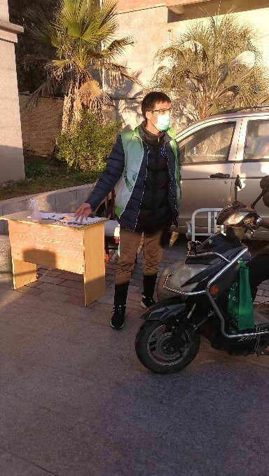 此外,染整学科党支部党员黄劲旭同志,也积极投身于小区疫情防控工作中来。215日左右,小区内疫情防控形势严峻起来,外地人员开始返回,小区物业工作人员严重不足,给疫情防控带来很大挑战。并且现有安保人员年龄偏大,工作强度吃不消。因此小区物业招募志愿者之际,黄劲旭同志毫不犹豫地主动担任志愿者,每天工作十几个小时,测试进入小区人员的体温、做好人员出入登记等,受到物业称赞,体现了东华人的责任担当。